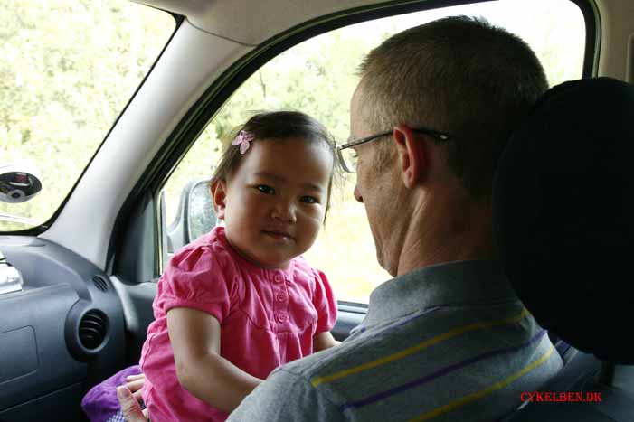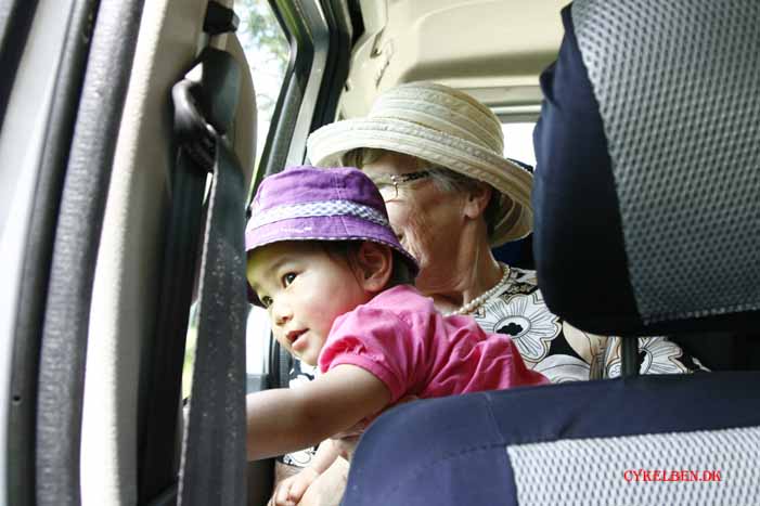 Camilla var helt vild med Gederne, Girafferne, Aberne og legepladsen og så selvfølgelig at få lov til at side bag rattet i Bedstefars bil… hun kunne lige styrer alle knapperne og “starte” bilen (heldigvis kun næsten)