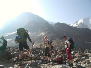 Man kan måske godt ærge sig lidt over at vi ikke nåede toppen, men på den anden side når man nu HAR været der og set hvordan det ser ud når store sten falder ned af en stejl bjergside. Har man altså ikke lyst til at fortsætte. det eneste man ønsker er bare at komme væk og det uden skader.